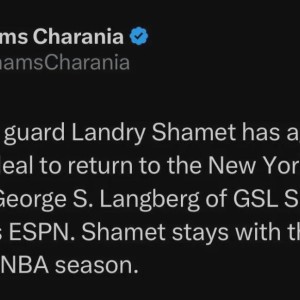 Shams:自由球员兰德里-沙梅特同意以一年合同重返尼克斯。紧接着队记Bondy补充报道,沙梅特签下的是一份无保障合同。...